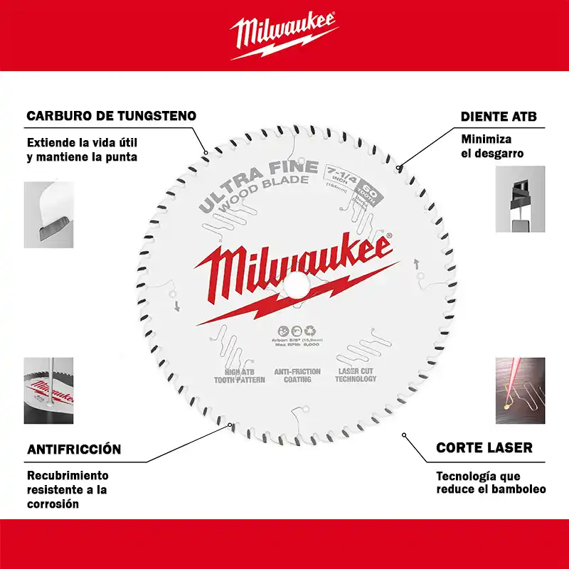 El Disco de acabado ultrafino para cortar madera de Milwaukee proporcionan un acabado suave y eficacia de corte para mejorar su productividad.