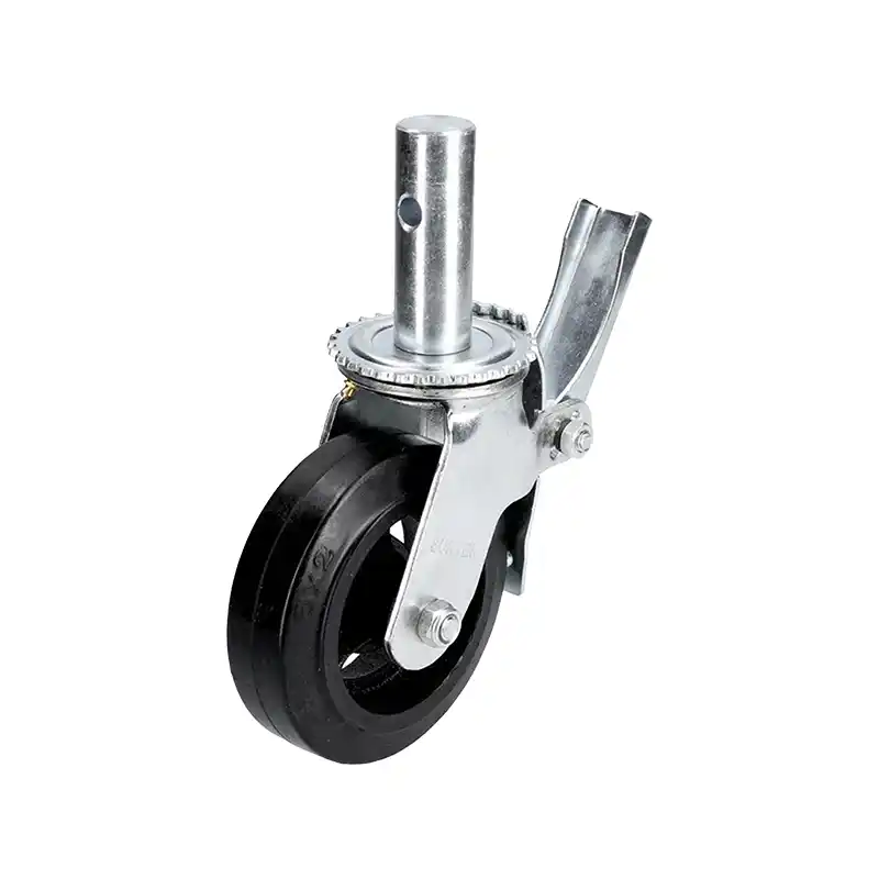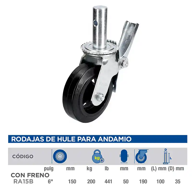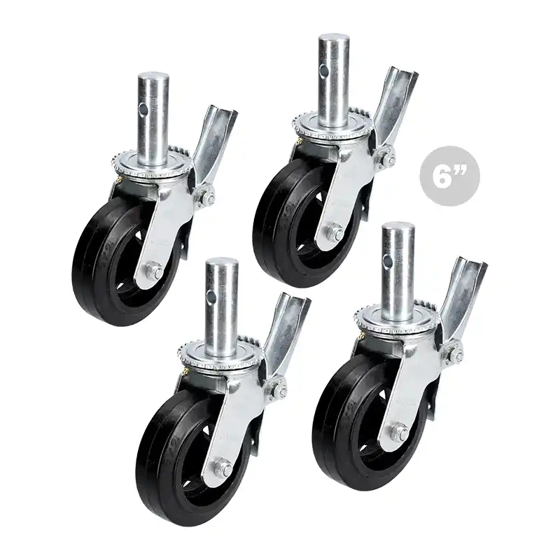 La rueda para andamio 6 pulgadas con freno es un accesorio indispensable para el montaje y desplazamiento de estructuras metálicas.