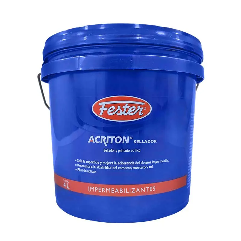 Sellador Primario Fester Acriton, material liquido de consistencia lechosa, base agua, elaborado a base de resinas acrílicas y aditivos especiales que le proporcionan características de sellado y adhesividad. Para uso en superficies de concreto, mortero, enladrillado, lamina metálica, entre otros.