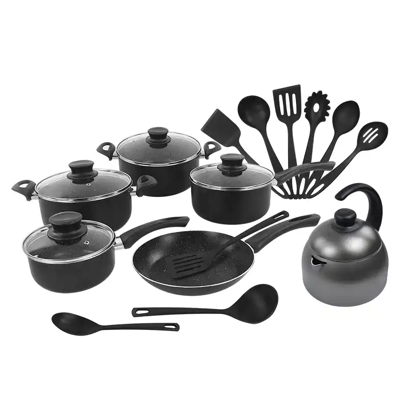 ¡Todo lo que necesita para preparar comidas exitosas podrá encontrarlo en el juego de cocina Tramontina Paris en aluminio con revestimiento interno y externo con antiadherente Starflon Max negro de 12 piezas!