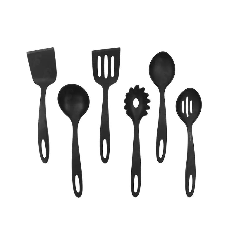 Para preparar y servir sus comidas con mucha más practicidad, cuente con el juego de utensilios Tramontina Ability en nylon negro de 6 piezas. Perfectos para utilizarlos en superficies antiadherentes y cerámicas, gracias a que no las daña, sus piezas soportan temperaturas de hasta 180 grados centígrados y son aptas para lavavajillas. Todas poseen un orificio pasador que permite colgarlos en su cocina, ¡y con la posibilidad de utilizarlos no solo para cocinar, sino también como piezas de decoración!