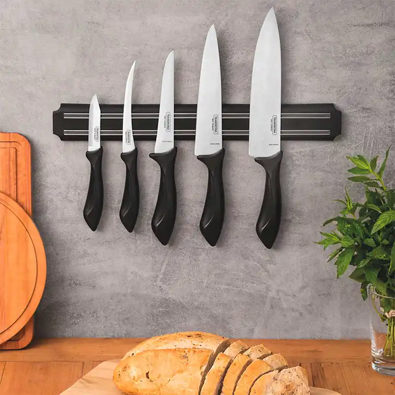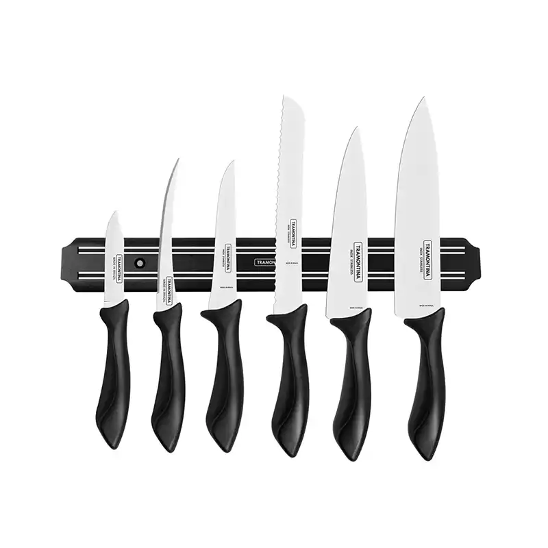 Un artículo indispensable para cualquier cocina. El Juego de Cuchillos Tramontina Affilata con Láminas de Acero Inoxidable y Mangos de Polipropileno Negro 6 Piezas ofrecerá más versatilidad para tu cocina, permitiendo que realices diversas preparaciones con practicidad.