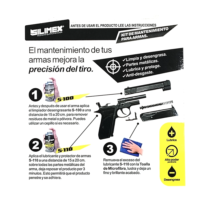 El Kit de Mantenimiento para Armas Mendoza Silimex KIT-M3-12 es una opción práctica y confiable para mantener tus armas en óptimas condiciones, especialmente si usas rifles o pistolas de aire como los Mendoza.