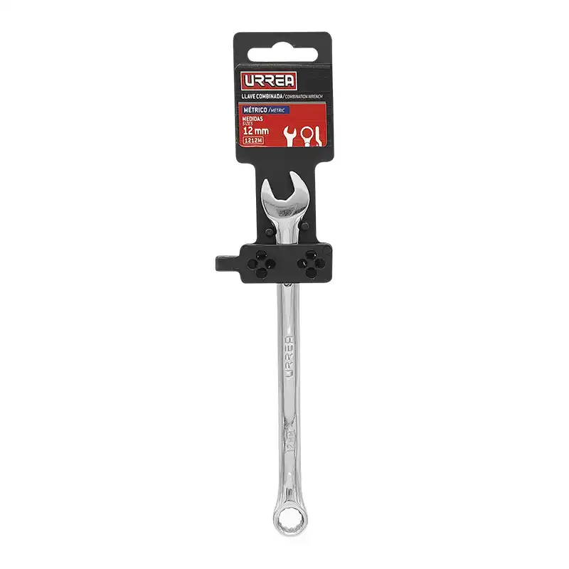 La llave combinada métrica Urrea 1212M de 12 mm es una herramienta de mano de doble función con una boca española para un ajuste rápido y un extremo de estrías para mayor resistencia y mejor agarre. Se utiliza para sujetar, apretar o aflojar tuercas y tornillos.