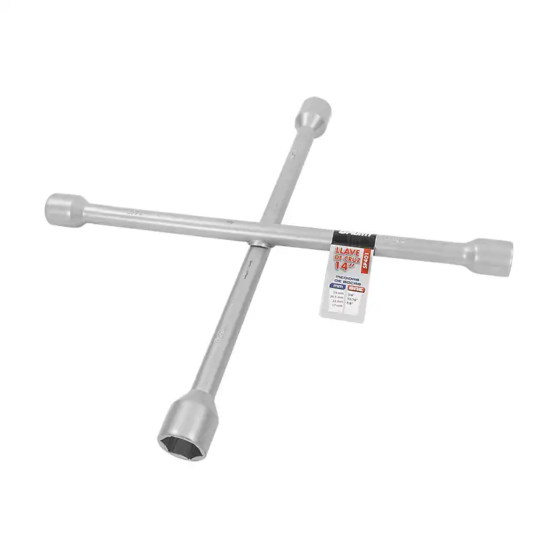La llave de cruz galvanizada Sprayit SP401 de 14 pulgadas es una herramienta robusta y funcional, ideal para aplicaciones automotrices y mecánicas donde se requiere torque uniforme y confiable.