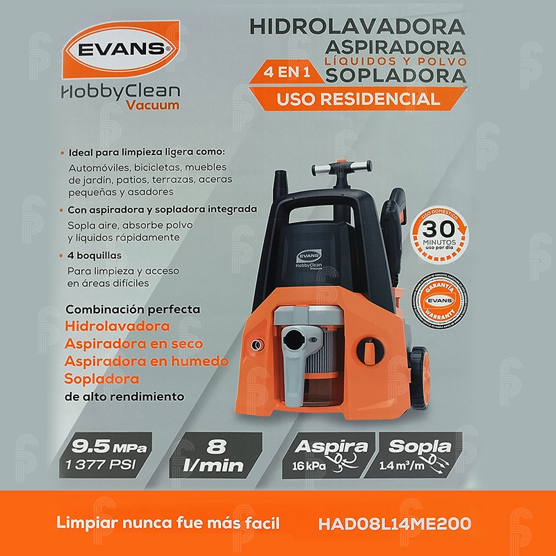 1 Hidrolavadora Aspiradora Evans HAD08L14ME200.