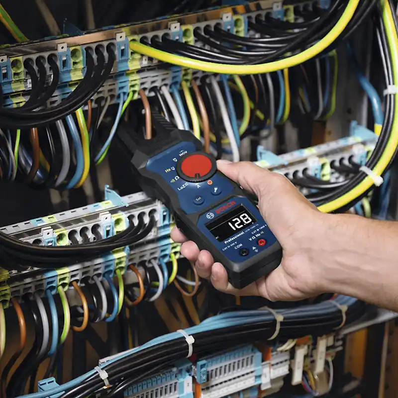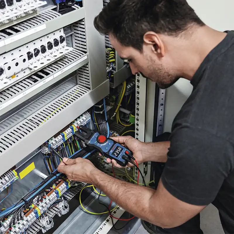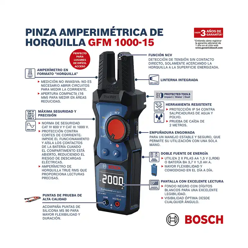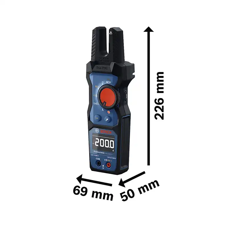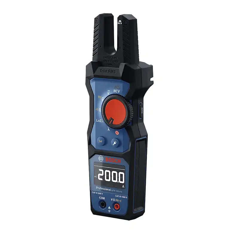 El medidor de horquilla GFM 1000-15 Professional está diseñado para profesionales que necesitan llevar a cabo comprobaciones de corriente alterna y voltaje CA/CC de forma rápida y eficiente. Con su diseño de mordaza abierta, mide corrientes de hasta 200 A CA sin cables de prueba para ahorrar tiempo y esfuerzo.