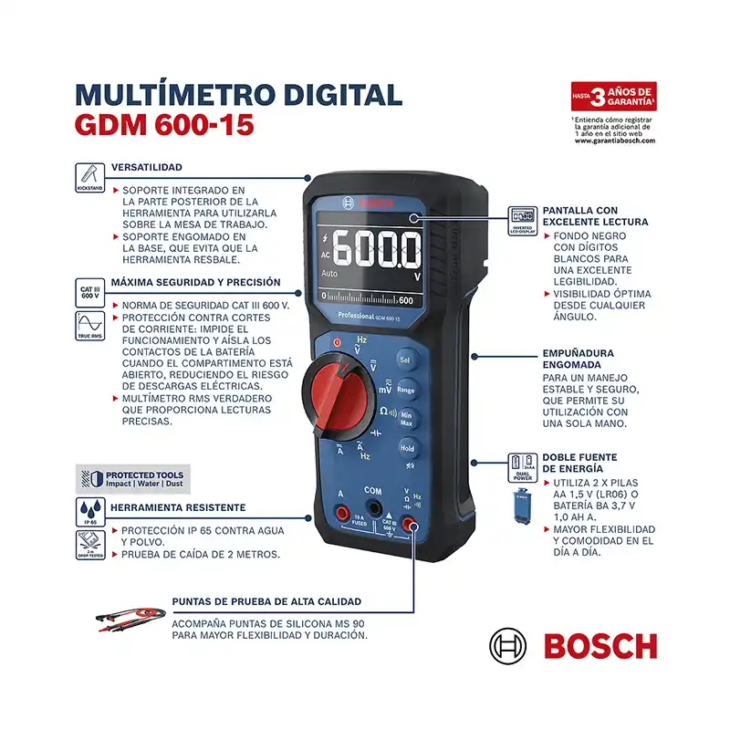 1 Multímetro Digital Professional Bosch GDM 600-15 600V.