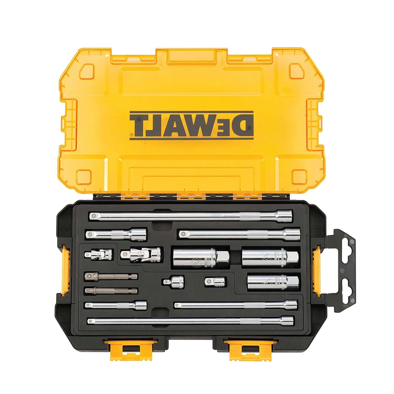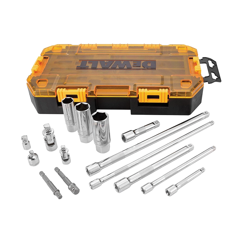 Este juego de 15 accesorios para herramientas con entrada de 1/4 y 3/8 pulgada es portátil y se puede transportar fácilmente entre áreas de trabajo.
