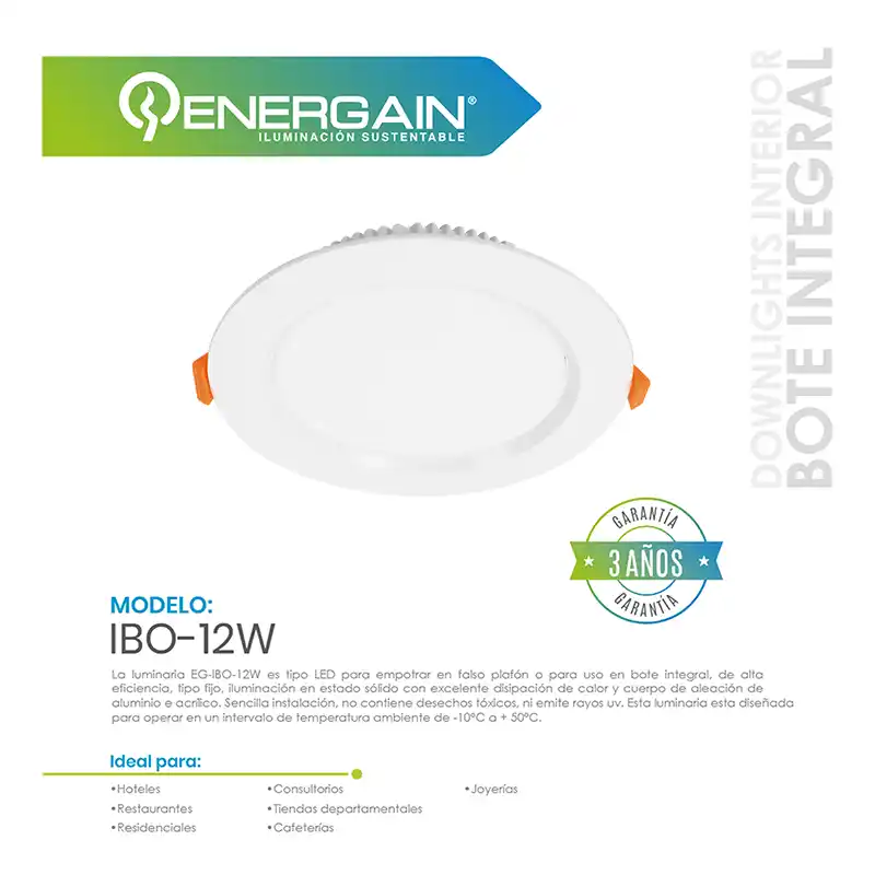 1 Lámpara de Techo LED Empotrar Energain EG-IBO-12W.