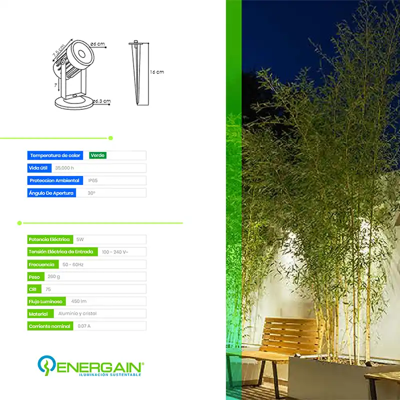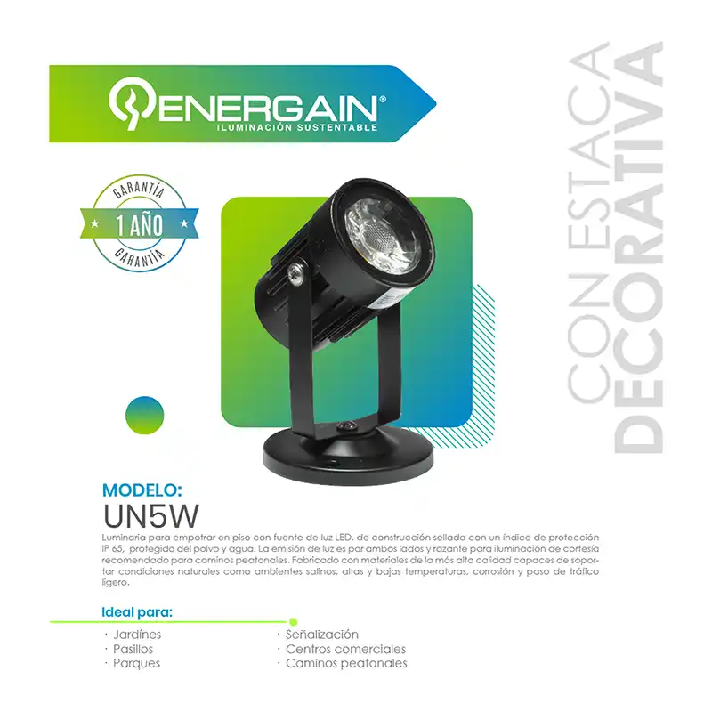 1 Lámpara LED Tipo Estaca 5W Energain EG-UN5W.