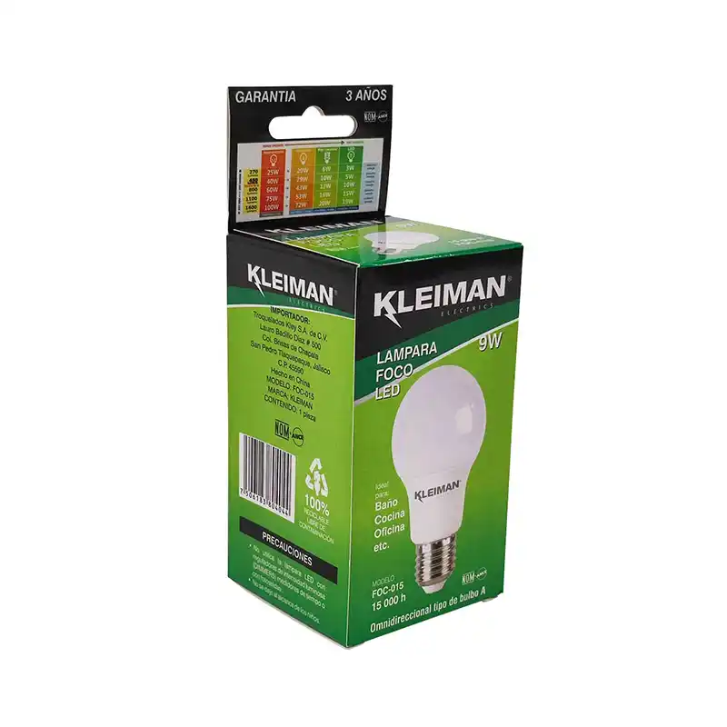 100 Piezas de Foco Led Luz Blanca Kleiman FOC-015 9 W.