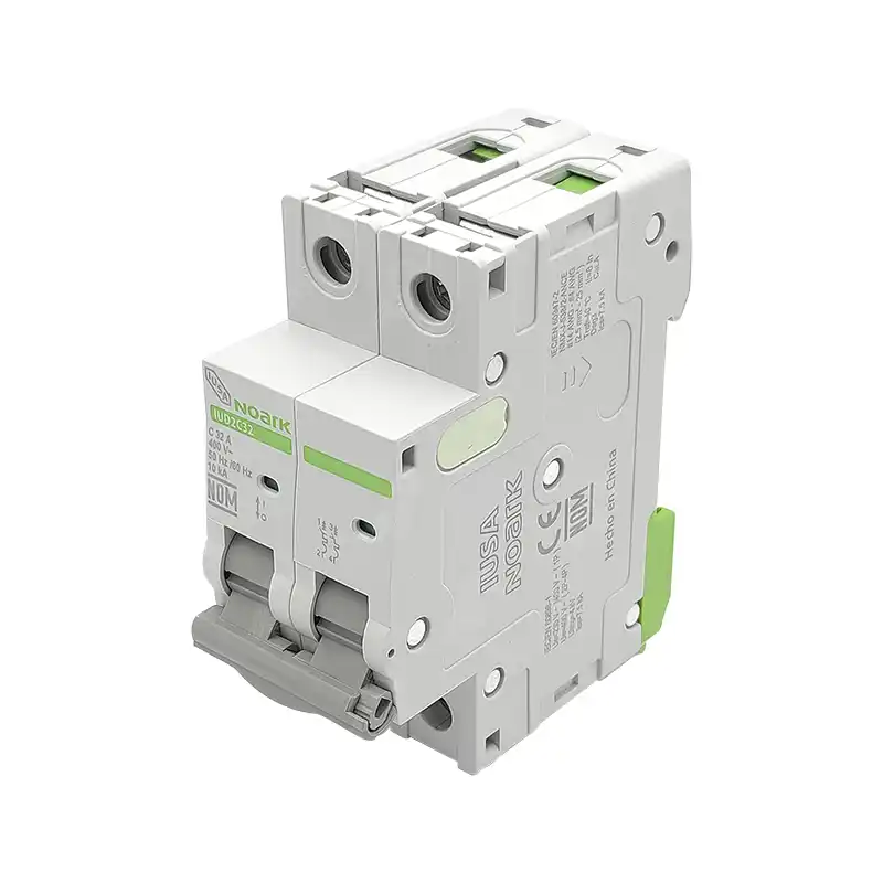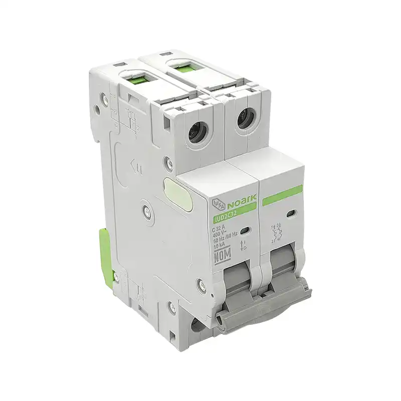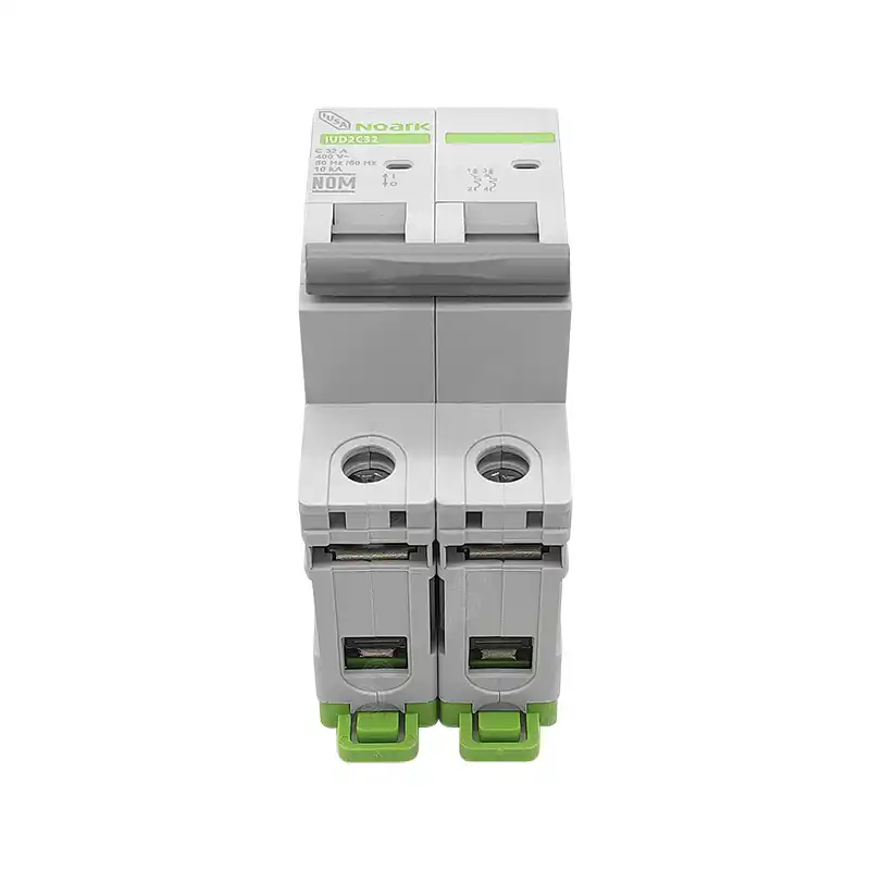 El interruptor termomagnético Iusa Noark 616901 es un dispositivo de 2 polos y 32 Amperes diseñado para proteger instalaciones eléctricas contra sobrecargas y cortocircuitos. Está fabricado para montarse en riel tipo DIN apto para aplicaciones generales en hogares y comercios.