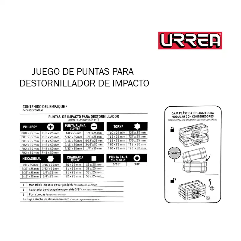 Juego Puntas Impacto para Destornillador Urrea JIM4 53pzas.
