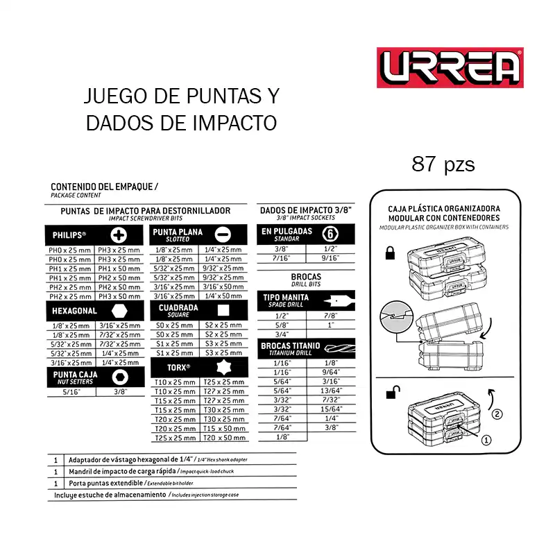 Juego Puntas y Dados Impacto Urrea JIM2 87pzas.