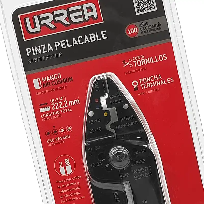 1 Pinza Pelacable 10-22 AWG Urrea 299 Uso Pesado 8-3/4".