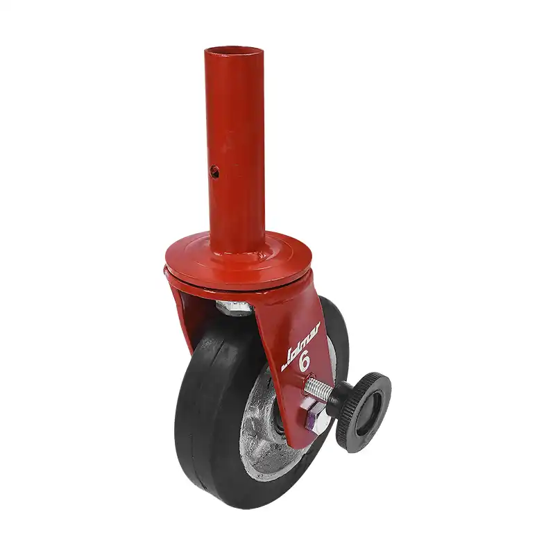 La Rodaja para Andamio Giratoria Jolmar I071 de 6" es una pieza robusta y esencial para estructuras móviles como andamios, carritos industriales o plataformas de trabajo.