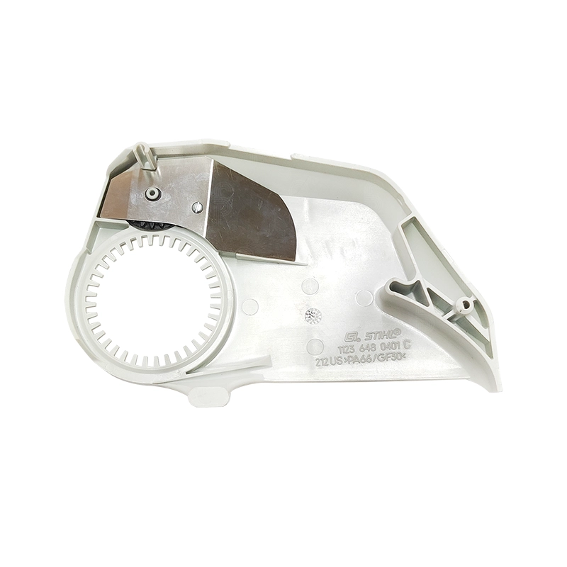 Pieza diseñada para cubrir el piñón de arrastre de la cadena en motosierras.