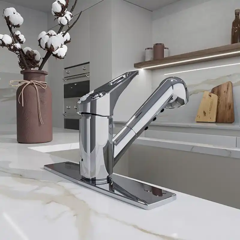 El monomando tiene una manguera retráctil que se oculta bajo el fregadero, lo que ofrece mayor alcance y flexibilidad para limpiar la tarja.