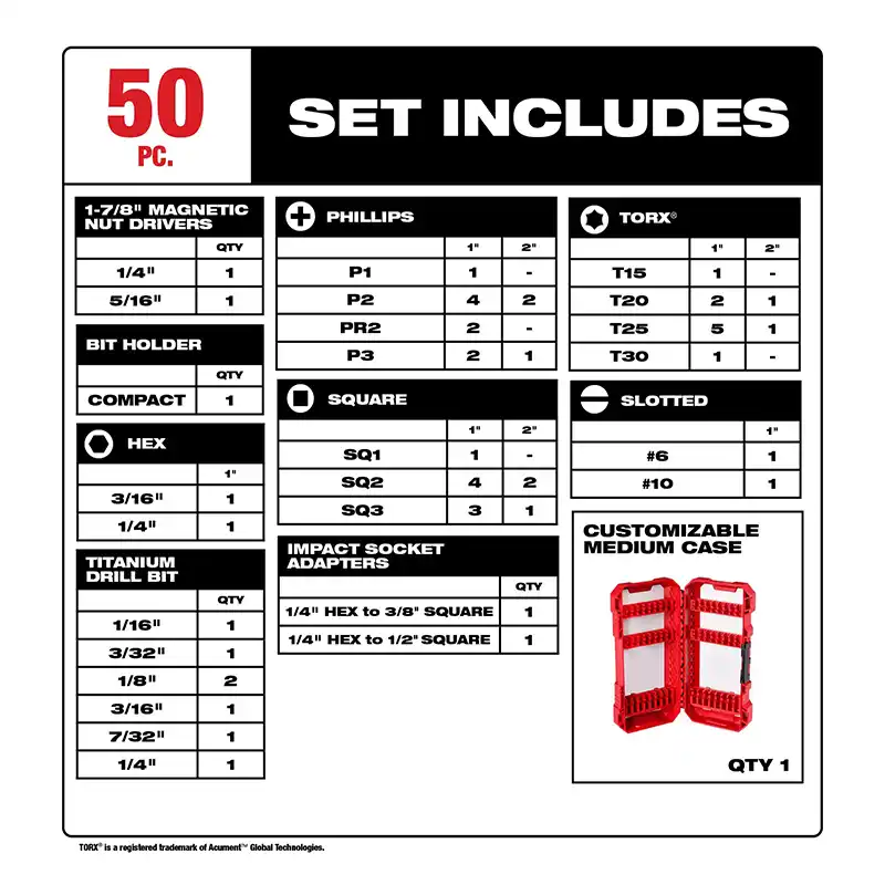 Juego Puntas y Brocas SHOCKWAVE Milwaukee 48-32-4013 50pzs.