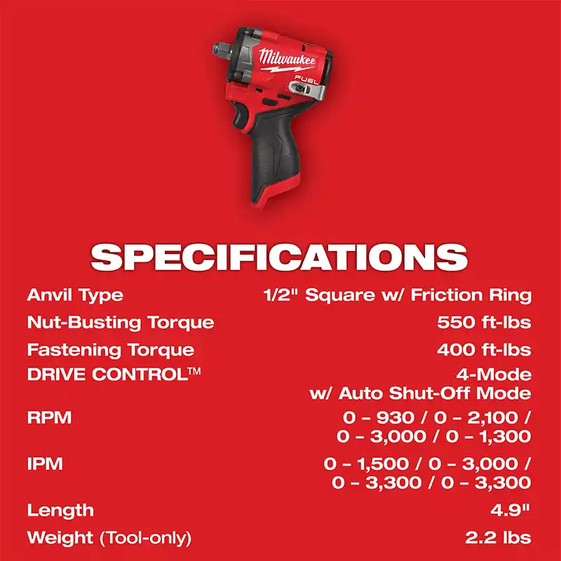 La nueva Llave de impacto corta ofrece la máxima potencia, es liviana y más compacta, mientras ofrece velocidades de aplicación 50 % más rápidas. Aprovechando el motor sin escobillas BRUSHLESS, la llave corta ofrece de 0 a 3,000 RPM con hasta 550 pies-lb de torque de arranque, lo que permite la extracción en las aplicaciones más difíciles y con más corrosión.