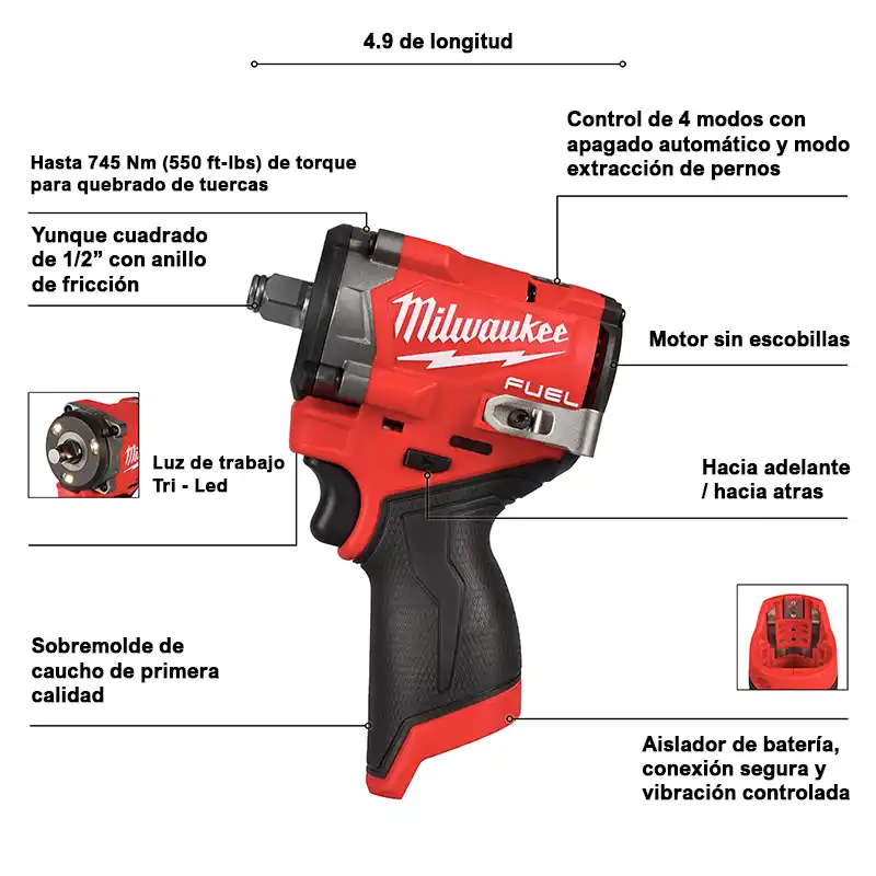 Los usuarios experimentarán menos fatiga en su semana laboral, mientras pueden meterse en espacios estrechos y acceden a lugares donde las llaves de impacto más grande no caben, sin usar accesorios adicionales ni desmontar componentes para alcanzar el sujetador que desean.