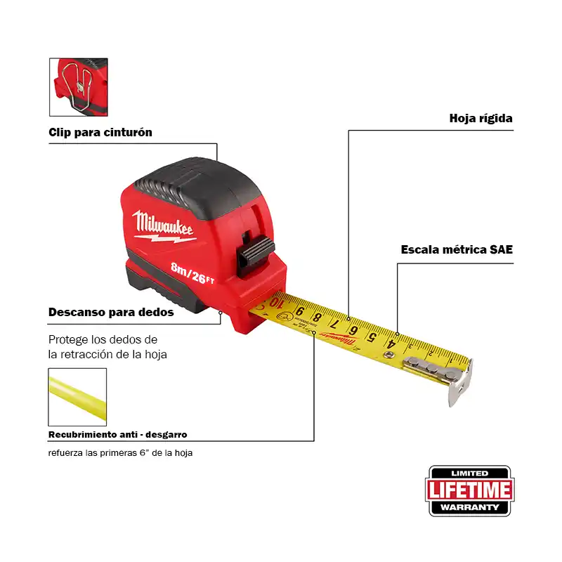 1 Flexómetro 8 Metros Compacto Milwaukee 48-22-1726.