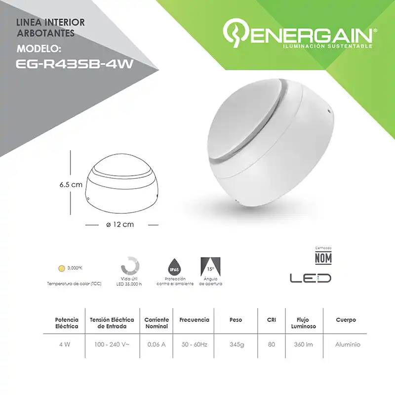 1 Arbotante LED Exterior Sobreponer Energain EG-R43SB-4W.