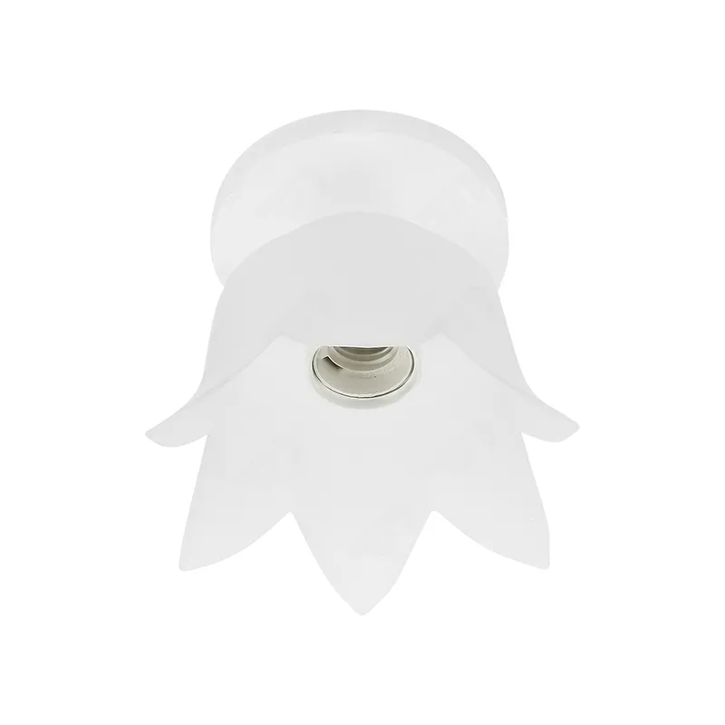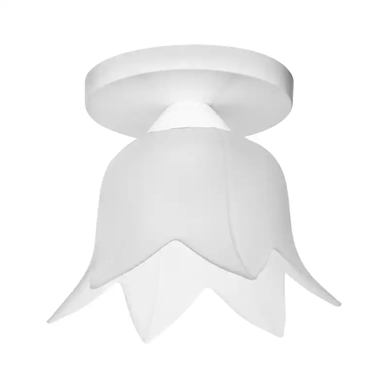 Plafón decorativo con diseño de flor en vidrio mate, ideal para interiores que buscan una iluminación suave y estética clásica. Este modelo es perfecto para recámaras, pasillos o salas con decoración romántica o vintage.