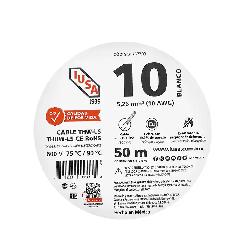 1 Rollo de Cable THHW-LS ROHS Iusa 267299 Cal.10 AWG Rollo 50m.