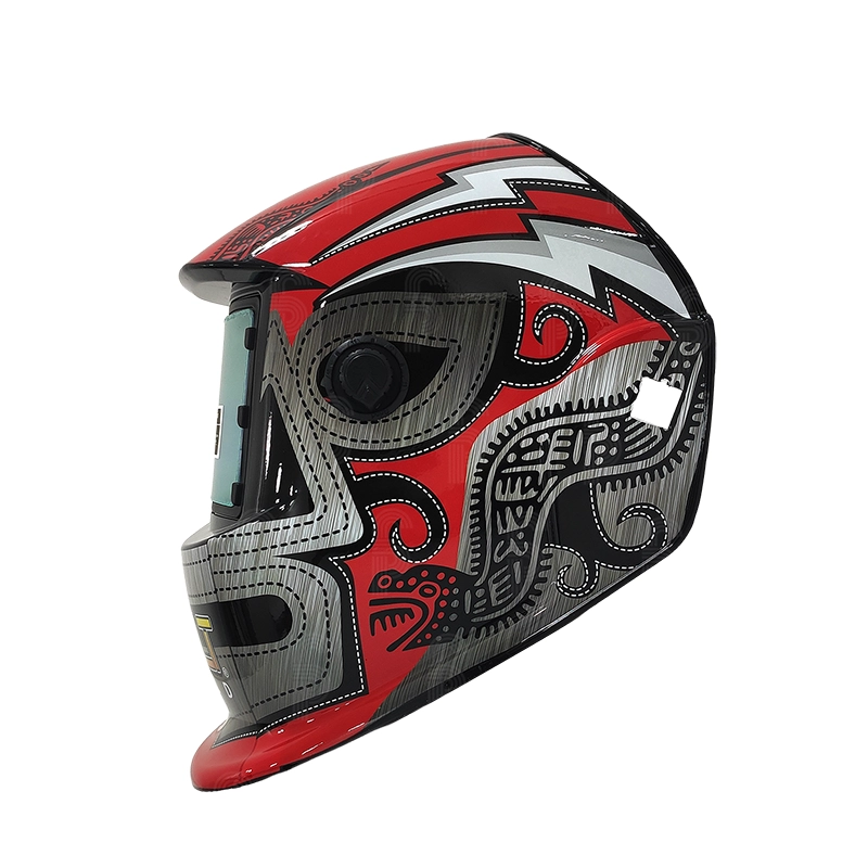 Careta electrónica para soldar sombra variable, cuenta con fuente de alimentación: celda fotoeléctrica,se carga al soldar no requiere batería, opción soldar/ esmerila, cuenta con dos sensores.