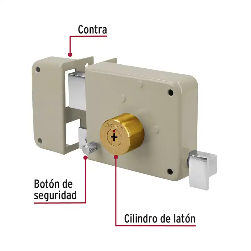 Fabricado en latón sólido con 9 pernos para mayor seguridad, además cuenta con un cilindro exterior integrado que facilita la instalación.