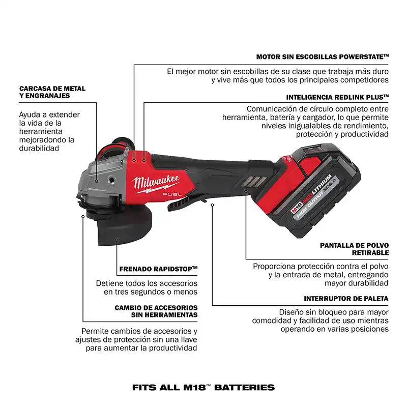 Miniesmeriladora Milwaukee M18 FUEL Brushless 5 Pulg