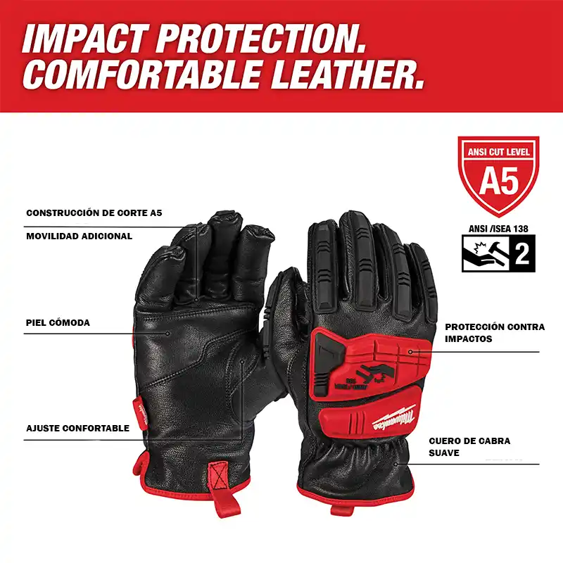 1 Par de Guantes de Cuero Anticorte Milwaukee 48-22-8782.