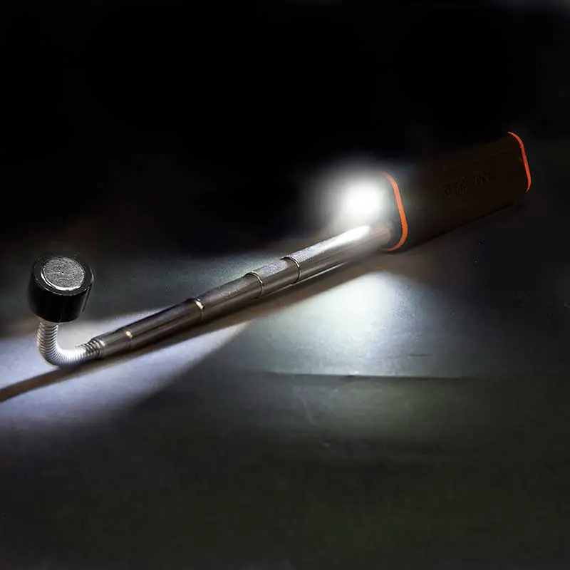 La herramienta telescópica con luz LED e imán para recoger elementos le permite recuperar sus herramientas caídas, lo que la convierte en un accesorio imprescindible en su maleta para herramientas.