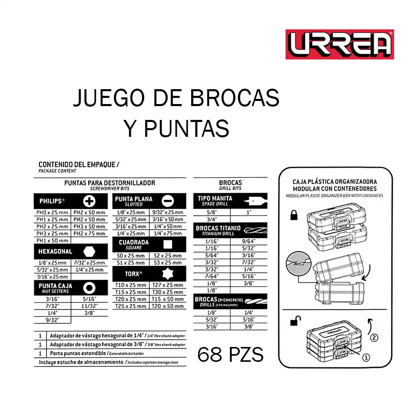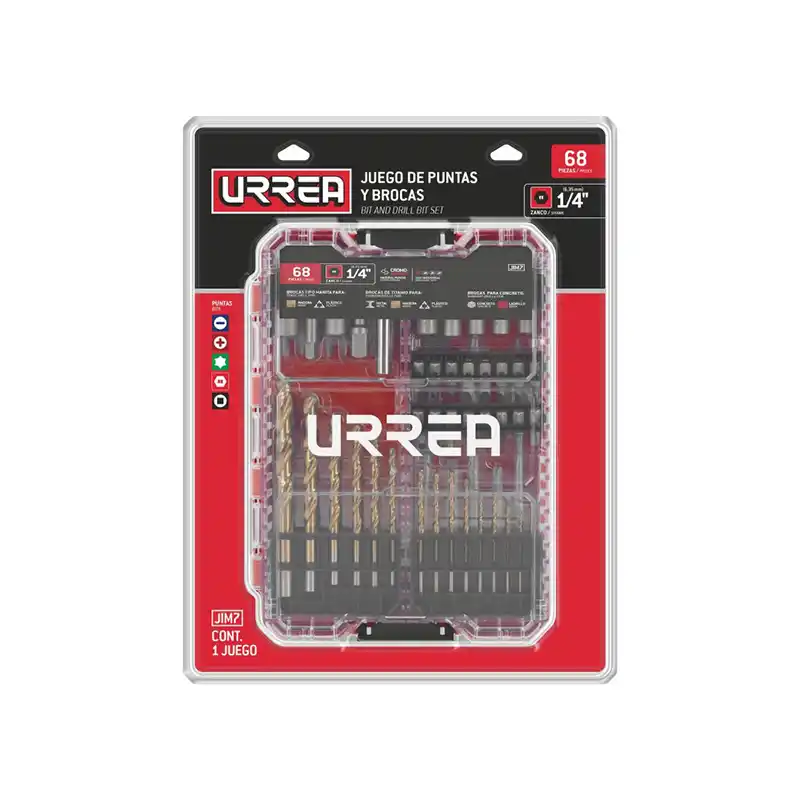 El Juego de Puntas y Brocas Urrea JIM7 de 68 piezas es una opción robusta y versátil para quienes buscan calidad profesional en sus herramientas.