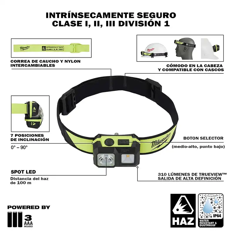 1 Linterna Frontal Led Direccional Milwaukee 2004HZL 310 Lm