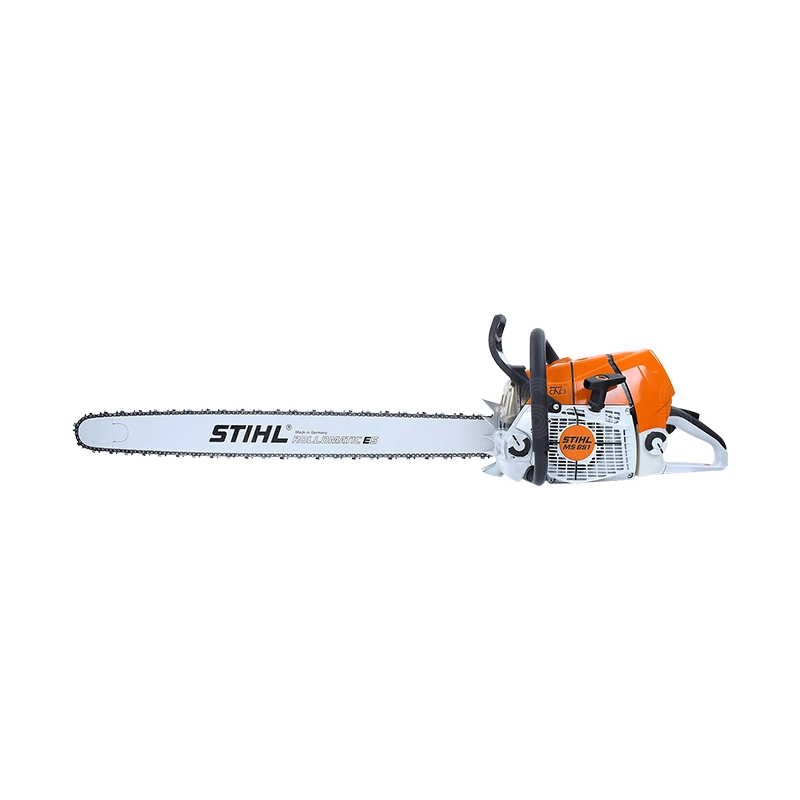 Motosierra potente, de uso intensivo para corte de arboleda grande y madera dura, peso muy favorable en relación a la potencia, cuenta con doble garra de tope para mejor manejo, sistema ElastoStart y válvula de descompresión, freno de cadena QuickStop de activación automática, mando confortable unificado multifuncional para el arranque, servicio y parada del equipo, sistema de filtro de larga duración con compensador y cierres de depósitos accionables sin herramienta.
