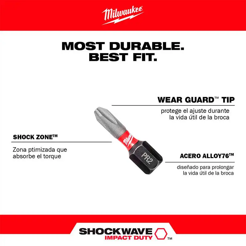 Nuestras puntas tipo Phillips 1 pulgada SHOCKWAVE están diseñadas para ser las puntas para destornillador más duraderas y de mejor ajuste del mercado.