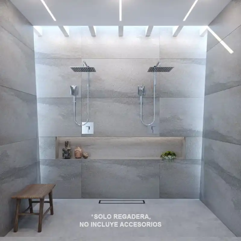 La regadera cuadrada de chorro fijo Helvex H-3011, también conocida como ultraplana de plato ancho de 12", es una opción con diseño moderno para el baño.