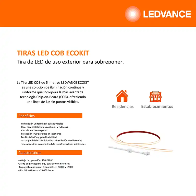La Tira LED Luz Cálida Ledvance 93143 Exterior es una tira de 25 metros con tecnología Chip on Board (COB), ideal para iluminación decorativa y ambiental en exteriores. Está diseñada para un uso profesional y cuenta con un alto grado de protección IP para resistir condiciones ambientales.