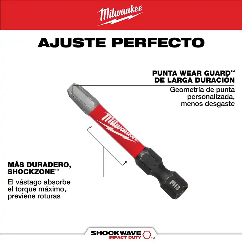 Juego Puntas de Impacto Phillips Milwaukee 48-32-4163 2" 25pzas.