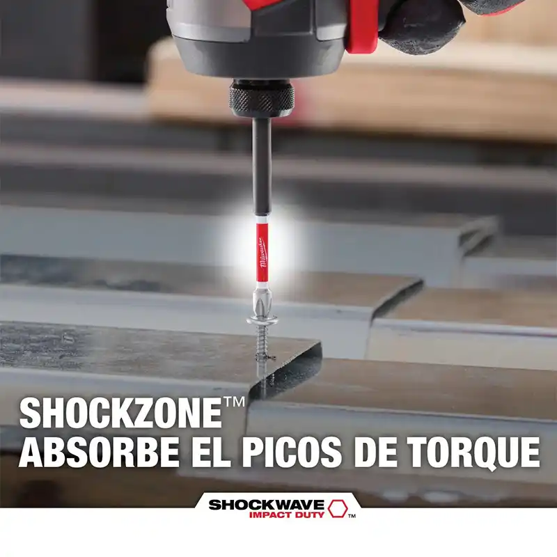 La geometría optimizada Shockzone es única para cada tipo de punta y ofrece una vida útil hasta 30 veces mayor y absorbe hasta 3 veces más torque que otras brocas de impacto.
