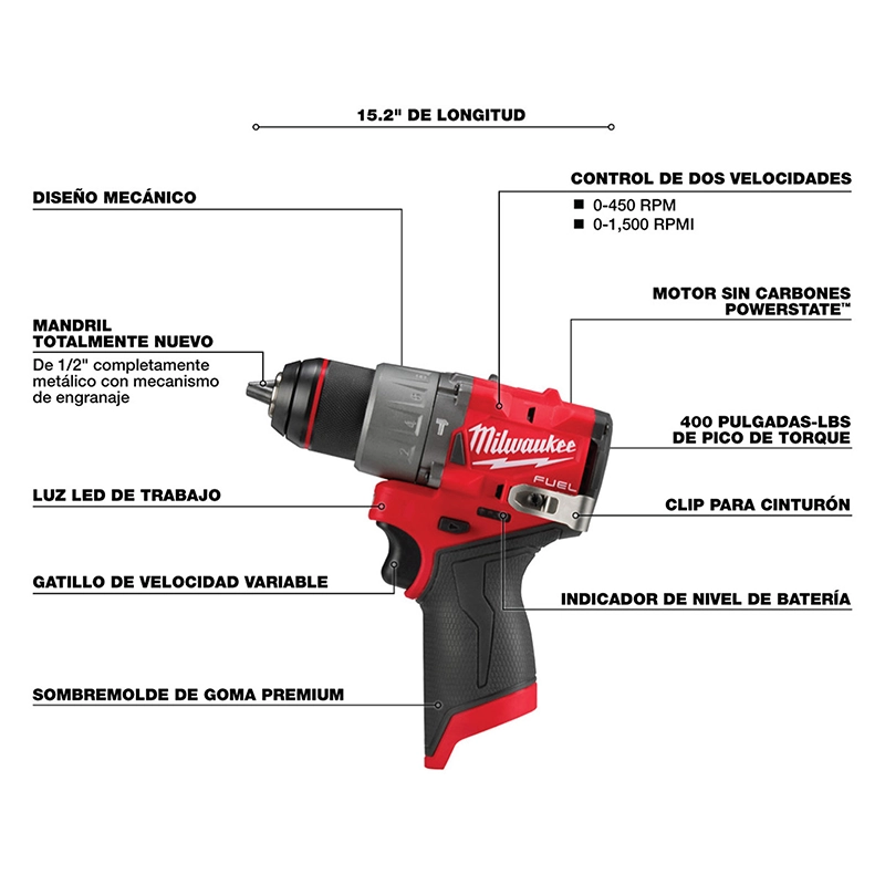 Tipo de portabrocas: portabrocas totalmente metálicos de 13 mm (12 pulg)