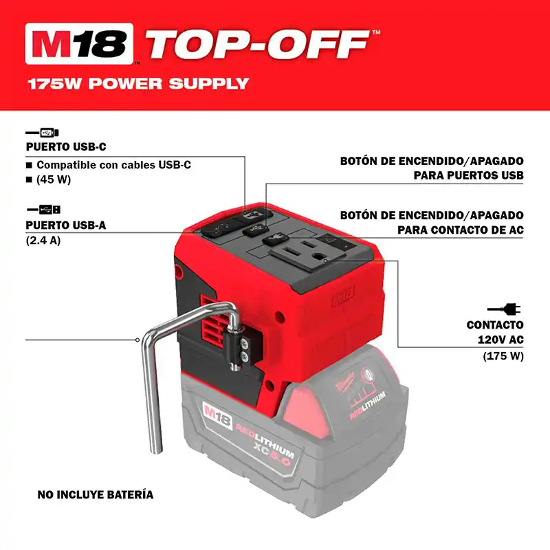 1 Fuente de Poder M18 Milwaukee 2846-20 TOP-OFF Sin Batería.