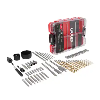 El Kit cuenta con un variado portafolio de brocas con diferentes diámetros, siendo las de acero titanio de alta velocidad para aplicaciones metálicas, brocas con punta de carburo para taladrar en mampostería, brocas de tres puntas para madera y brocas planas de titanio que permiten taladrar en diámetros mayores en diferentes tipos de madera.